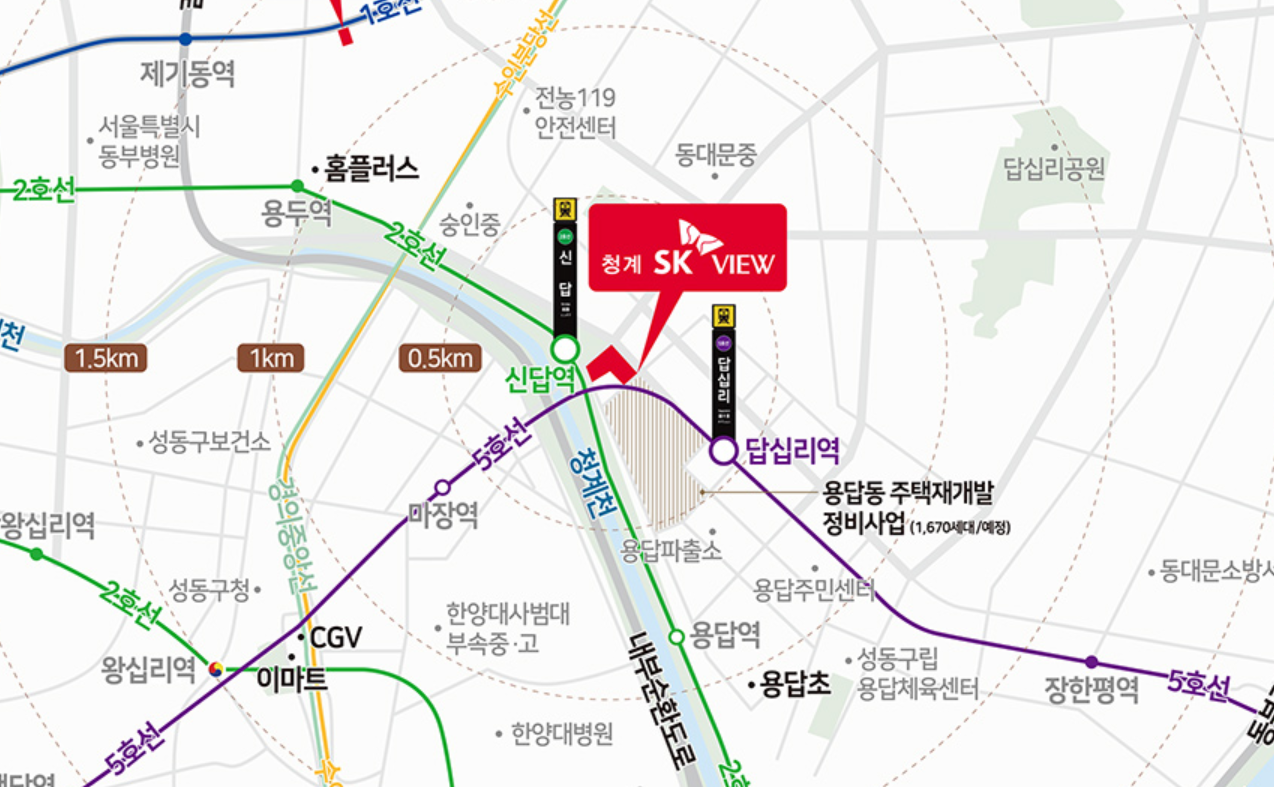 청계천 뷰에 2호선 신답역과 5호선 답십리역까지 더블역세권을 누릴수 있는 기회는 많지 않으니