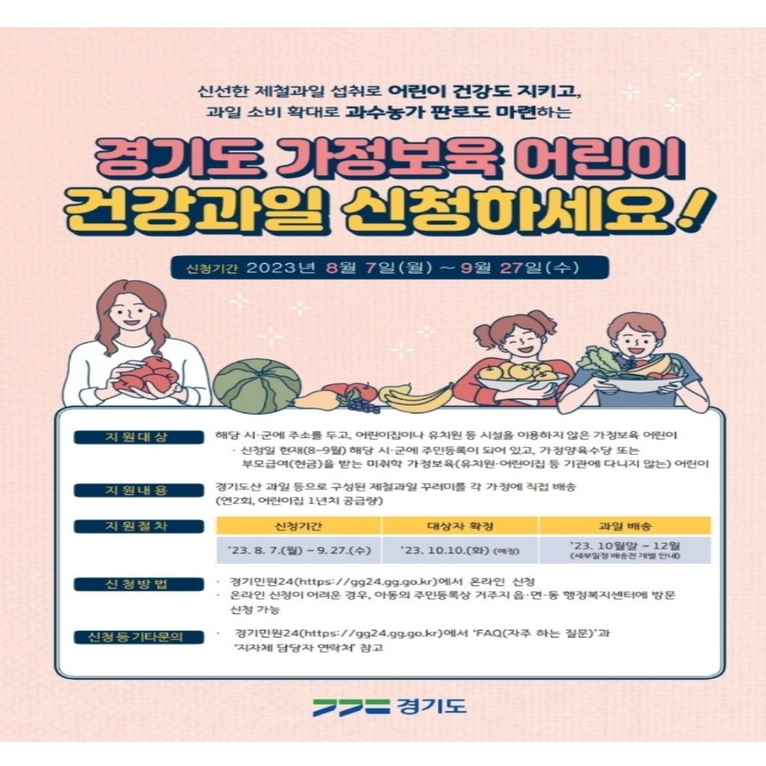 코로나 이후에 시작된 경기도 가정보육 어린이를 대상으로 한 건강과일 사업이