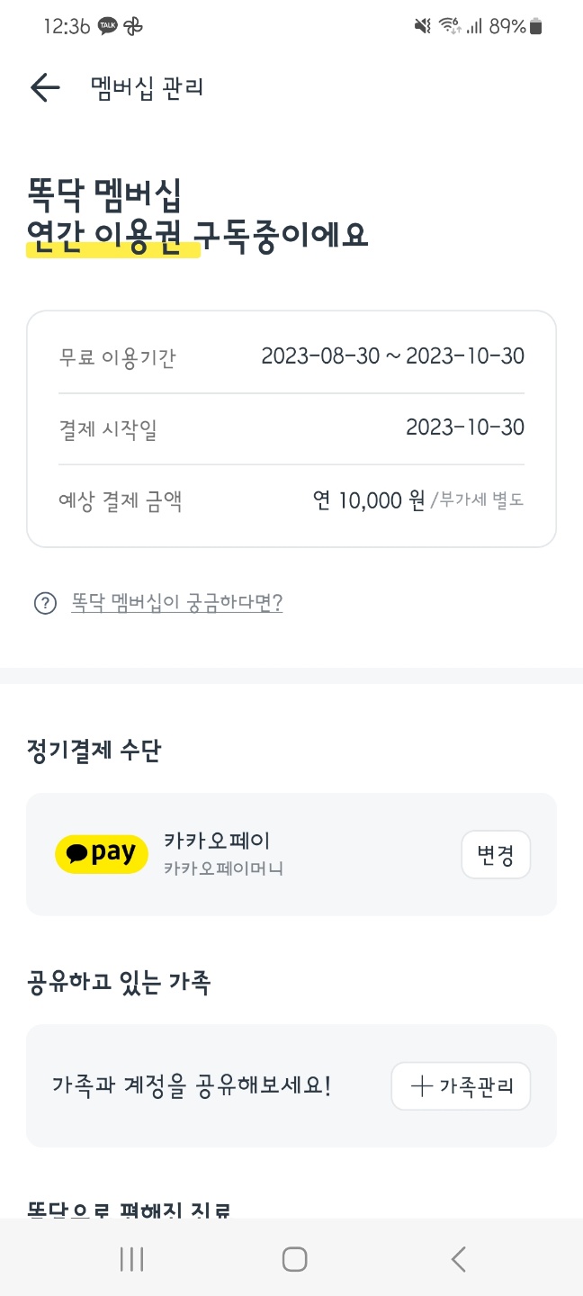그 후에 연동해 놓은 카드로 자동결제가 되는 시스템이에요.